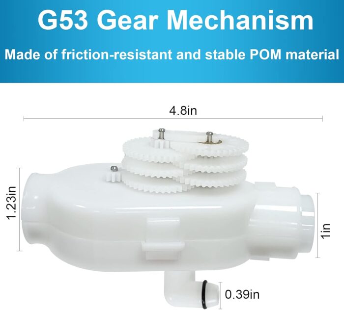 Crafted with a crack- and chemical-resistant polymer blend for 2X longer lifespan. Perfect for harsh pools and prevents damage from chemicals and obstacles. - Efficient Gear Mechanism: